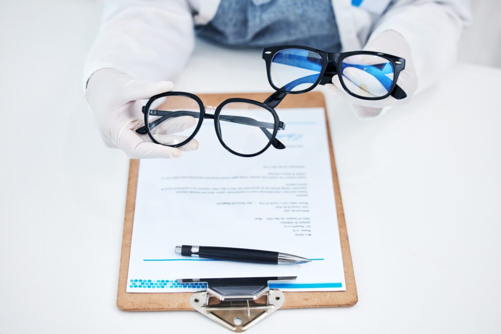• Visual acuity and refractive error (glasses/contact lens prescription)